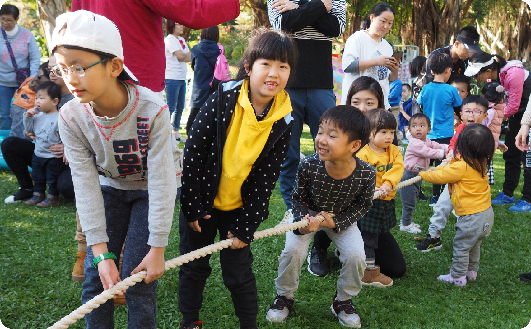 一條大繩,緊緊串連所有街坊,一同玩扯大纜